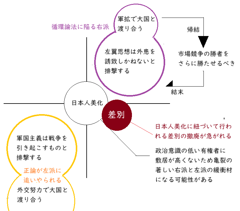いまそれをやる意味とは、私兵を生み出すことです。経済が疲弊し、社会で貧困は拡大し、日本人であることだけが誇り、という可哀想な日本人が増えれば、彼らは外国人を敵視する排外主義者になるでしょう。やがて自分が所属する日本が強国であることを望むでしょう。
